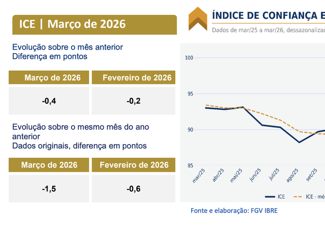 Confiança empresarial recua pelo segundo mês consecutivo, informa FGV-IBRE