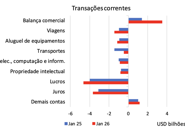Banco Central informa que déficit na balança de pagamentos foi de US$ 8,4 bi em janeiro, menos que em janeiro de 2025