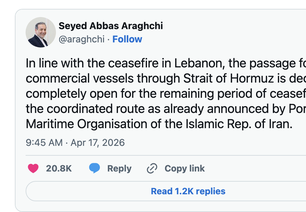 Irã anuncia que Estreito de Ormuz está totalmente aberto a navegação no Estreito de Ormuz; Donald Trump agradece o Irã