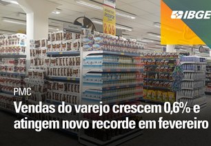 Vendas do comércio crescem 0,6% em fevereiro, informa PMC do IBGE