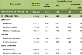 INFLAÇÃO: IGP-10 avança 0,16% em agosto, informa FGV-IBRE