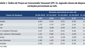 PREÇOS: Inflação pelo IPC-S variou 0,30% na quarta quadrissemana de outubro, informa FGV-IBRE