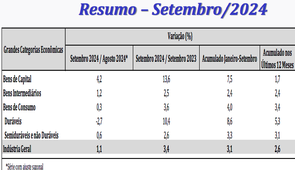INDÚSTRIA: Depois de um período de queda, setor industrial avança 1,1% em setembro, informa IBGE