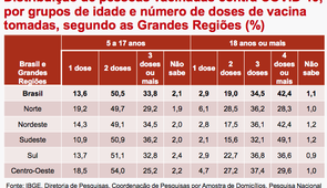Pesquisa do IBGE sobre vacinação aponta que 38,6% das pessoas que iniciaram o esquema vacinal não haviam tomado todas as doses recomendadas; chama atenção que 25,7% não consideram a vacina necessária