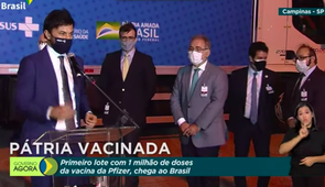 VACINA: Chega ao Brasil o primeiro lote de 1 milhão de vacinas da Pfizer/BioNTech; governo fez ato por conta da chegada do imunizante no aeroporto de Viracopos