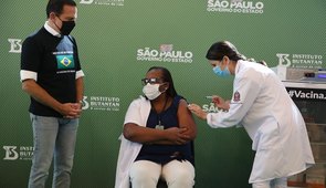 VACINAS: São Paulo faz a primeira vacinação de brasileira contra o covid-19; enfermeira do Emílio Ribas, Mônica Calazans, foi a primeira vacinada