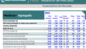FOCUS: Pela segunda semana seguida, mercado estima recuo no IPCA, a inflação oficial, informa BC