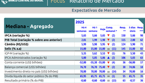 FOCUS: Pesquisa do Banco Central registra segunda semana de queda do IPCA, PIB e câmbio; inflação ficou estimada em 5,65% e PIB estimado em 1,98%