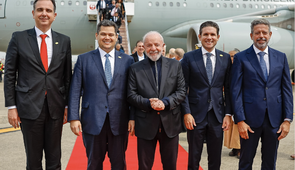Lula desembarca com grande comitiva de chefes e ex-chefes do Legislativo; Davi Alcolumbre, nas redes sociais, disse que o há um compromisso de ampliar as possibilidades de investimento, inovação e desenvolvimento para o Brasil