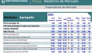 FOCUS: Mercado, pela primeira vez no ano dentro da pesquisa do BC, aponta recuou na inflação ficando em 5,66%, mas o PIB também ficou estimado em queda, 1,99% ao final de 2025