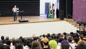 Depois de meses falando para elite mundial nos EUA e Europa, Luís Barroso, arregaça mangas, fala a estudantes de escola de ensino médio; Barroso falou sobre a vida, da democracia e de questões como mudanças climáticas e IA