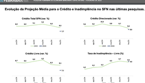 Febraban estima que projeção de crescimento do crédito total em 2025 é revista para 8,5%, informa pesquisa; Febraban estima PIB em 2,0%