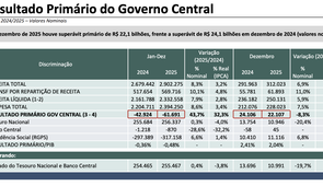 Governo Federal apresentou déficit de R$ 61,7 bilhões no seu Resultado Primário de 2025