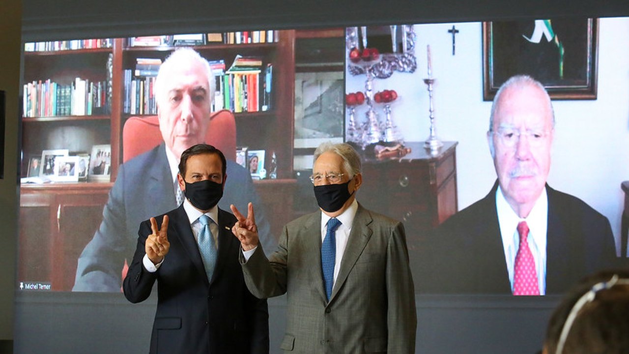 (Brasília-DF, 25/01/2021) Os ex-presidentes da República, José Sarney, Fernando Henrique Cardoso e Michel Temer participaram de um evento pró-vacina organizado pelo governador João Dória(PSDB), no Palácio dos Bandeirtantes nesta tarde, 25. Só FHC esteve ao lado de Dória no evento, os outros presidentes participaram do ato por videoconferência.