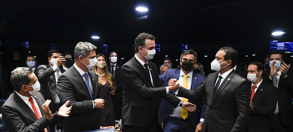 Apesar de ser do DEM, o senador mineiro, novo comandante do Senado Federal, é oriundo do MDB e da advocacia. Em seu primeiro discurso, agradeceu o ex-presidente da Casa, senador Davi Alcolumbre (DEM-AP), por ajudá-lo a se eleger. Ele elogiou ainda a postura da sua adversária, a senadora Simone Tebet (MDB-MS), a quem derrotou por uma margem de 36 votos.