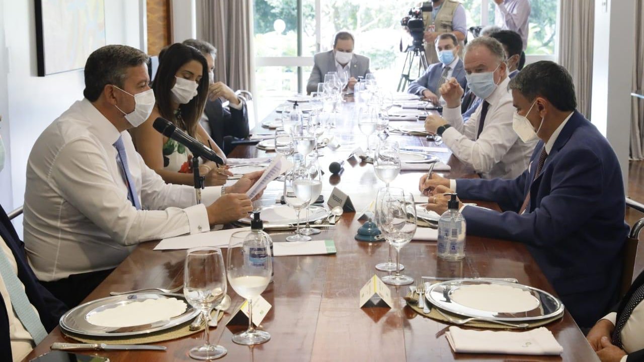 (Brasília-DF, 02/03/2021) O presidente da Câmara dos Deputados, Arthur Lira (Progressitas-PI) em fala aos governadores no almoço-reunião no início da tarde desta terça-feira, 2, após considerações iniciais - fez três solicitações. Pediu que os governadores mobilizem as bancadas federais em Brasília para destinar recursos para compor o que ele chamou de “Fundo Emergencial da Pandemia”, ele pediu, também, que os recursos de orçamento de obras para os estados fossem destinadas para enfrentar a pandemia e finalizou que todo o aumento de arrecadação também seguisse para atender esse fim.