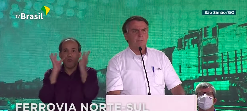 Num discurso raivoso durante a inauguração de um trecho da Ferrovia Norte-Sul no município de São Simão (GO), o presidente brasileiro voltou a criticar as medidas de restrição adotadas por governadores e prefeitos para evitar a propagação de covid num momento em que começam faltar leitos nas unidades hospitalares. Segundo ele, o STF castrou a sua autoridade em decidir no plano nacional pela adoção, ou não, destas medidas. O trecho inaugurado da Ferrovia Norte-Sul entre São Simão (GO) e Estrela d'Oeste (SP) possui 172 quilômetros.
