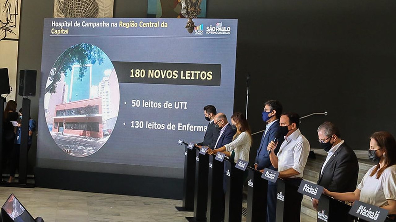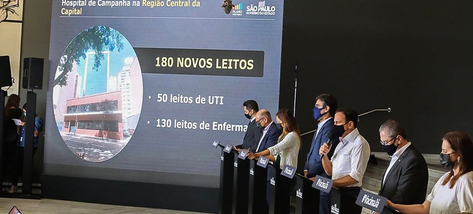 (Brasília-DF, 16/03/2021) Nesta segunda-feira, 15, em sua coletiva de prestação de contas no Palácio dos Bandeirantes, na Capital Paulista, o governador de São Paulo, João Dória(PSDB), anunciou que vai ativar mais um hospital de campanha no Centro da cidade de São Paulo, oferecendo mais 180 leitos exclusivos para casos graves de COVID-19.