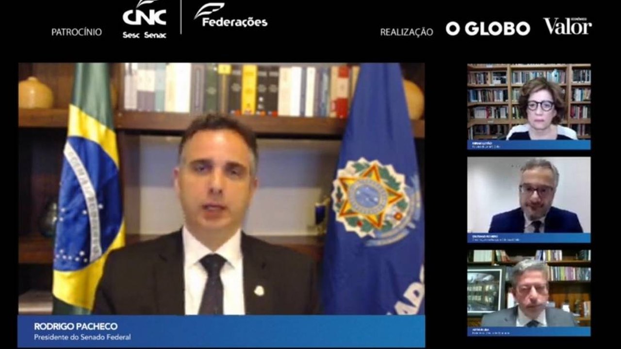 Rodrigo Pacheco apontou para os conflitos entre o iniciativa privada e o setor público, que não quer perder arrecadação no período da pandemia. "Há dúvidas dentro da iniciativa privada e divisão entre União, estados e municípios. Não é fácil, mas temos de buscar o possível", propôs.