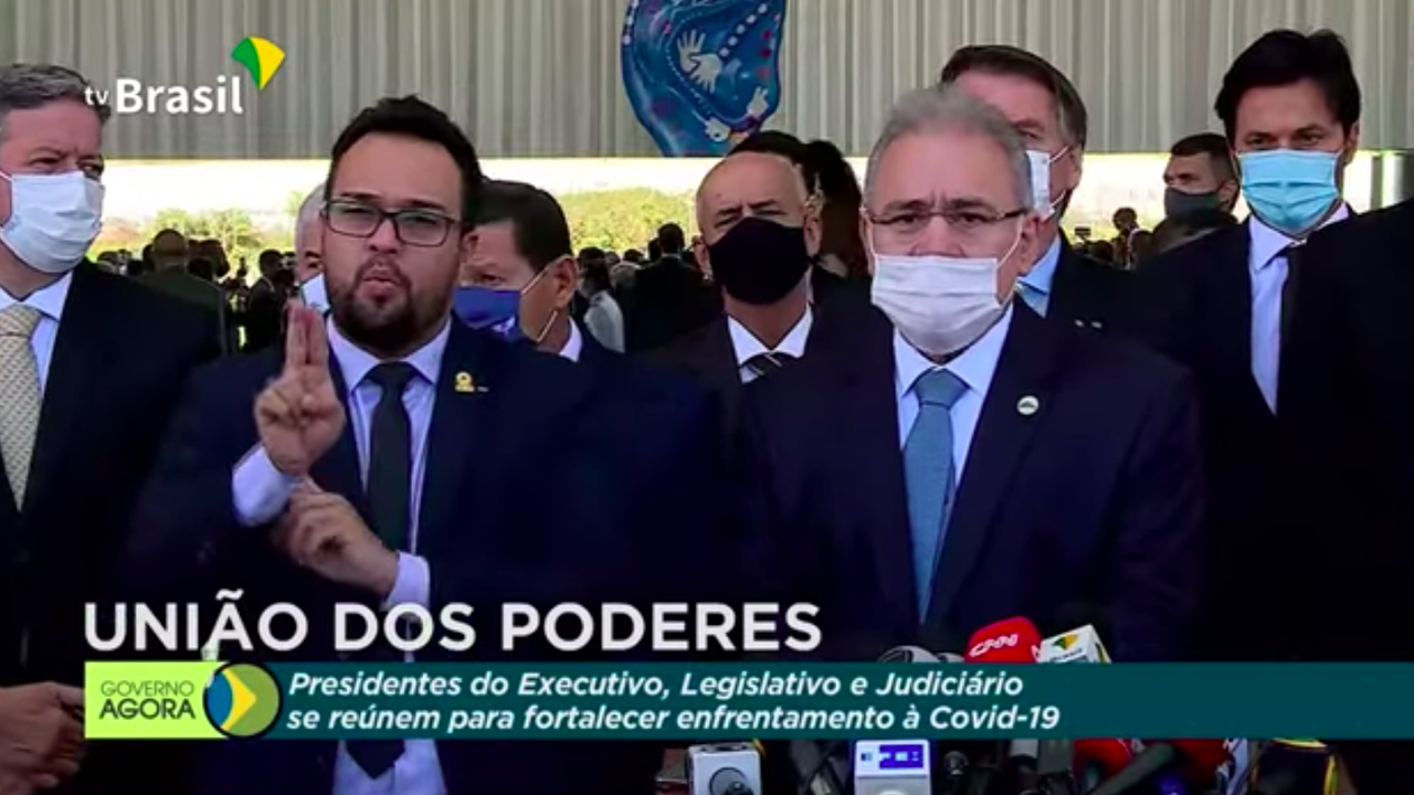“Participamos de uma reunião de alto nível caracterizada pela harmonia entre os poderes. A conclusão é o fortalecimento do Sistema Único de Saúde articulada nos três níveis: União, estados e municípios para prover a população brasileira com agilidade uma campanha de vacinação que possa atingir uma cobertura vacinal capaz de reduzir a circulação do vírus”, iniciou o novo ministro da Saúde, o quarto que ocupa o posto em menos de um ano.