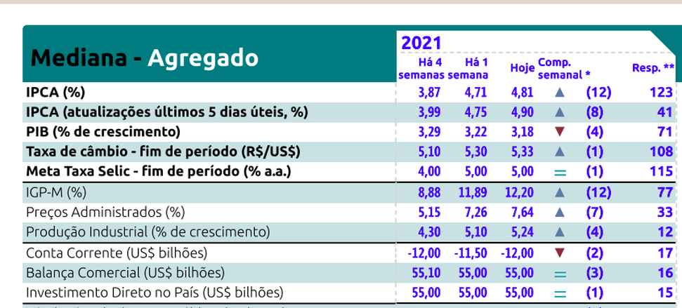 VEJA OS NÚMEROS DO RELATÓRIO FOCUS.