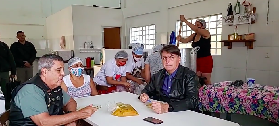 (Brasília-DF, 05/04/2021) O presidente Jair Bolsonaro teve uma “Sábado de Aleluia” fora do Palácio do Alvorada neste 3 de abril. Ele esteve com o ministro da Defesa, General da reserva Braga Netto, na Associação Beneficente Cristã Casa de Maria - Beth Myriam, na região do Itapoã, um região popular no Distrito Federal. Ele fez um passeio com moto até essa região, onde tomou sopa. Ele fez transmissão em sua conta do Facebook, depois ele falou com aos jornalistas no Alvorada. Bolsonaro voltou a criticar as medidas restritivas dos governadores e prefeitos, disse que poderá se vacinar e que não faz guerra política mas que envolve a Nação.