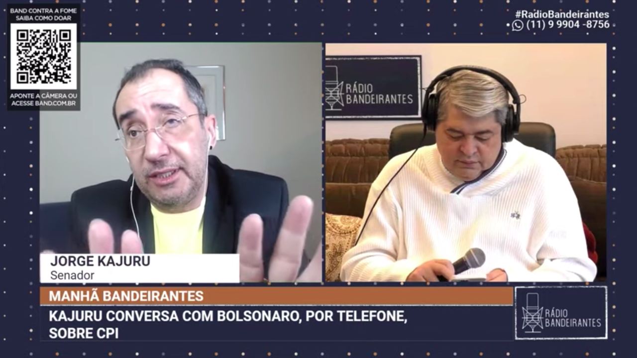 (Brasília-DF, 13/04/2021) A conversa entre o senador Jorge Kajuru(Cidadania-GO) e o presidente Jair Bolonaro( sem partido) não para render desdobramentos. Ele falou na manhã desta segunda-feira,12, ao jornalista José Luiz Datena no programa Manhã Bandeirantes. Ele touxe mais revelações sobre a conversa e afirmou que Bolsonaro sabia que estava sendo gravado e que a conversa telefônica seria divulgada. Segundo Kajuru Bolsonaro chamou o senador Randolfe Rodrigues( REDE-AP) de canalha e que iria sair na “porrada” com o senador pelo Amapá.