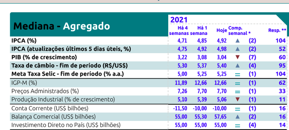 VEJA OS NÚMEROS DO RELATÓRIO FOCUS