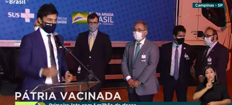 Em pronunciamento no aeroporto de Viracopos, o ministro Marcelo Queiroga ressaltou que a saúde é um direito fundamental consagrado em nossa Constituição Federal. "É um direito de todos e um dever do Estado. E esse direito se materializa através de uma ampla campanha de vacinação".