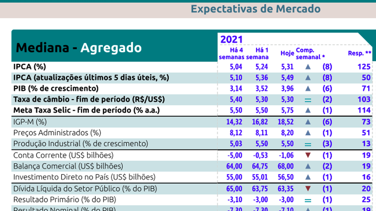 FOCUS: Banco Central aponta IPCA chegando a 5,49% e PIB perto de 4% em 2021