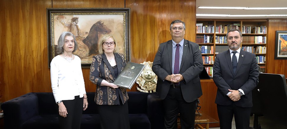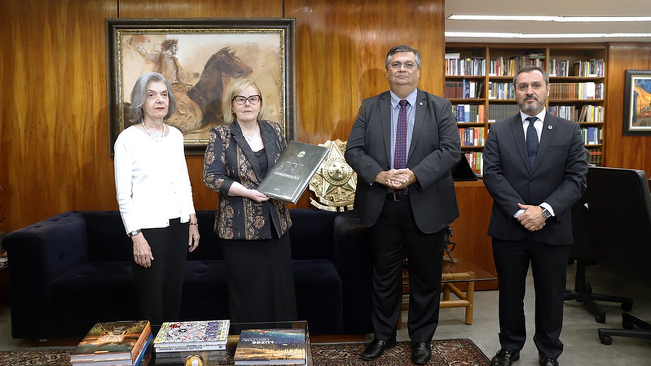 Na tarde desta sexta-feira, 13, a presidente do Supremo Tribunal Federal (STF), ministra Rosa Weber, recebeu das mãos do ministro da Justiça e Segurança Pública, Flávio Dino, a réplica da Constituição Federal de 1988 levada durante os atos de vandalismo no edifício-sede do Tribunal. No encontro, estavam presentes também a ministra Cármen Lúcia e o diretor da Polícia Federal, Andrei Passos Rodrigues.