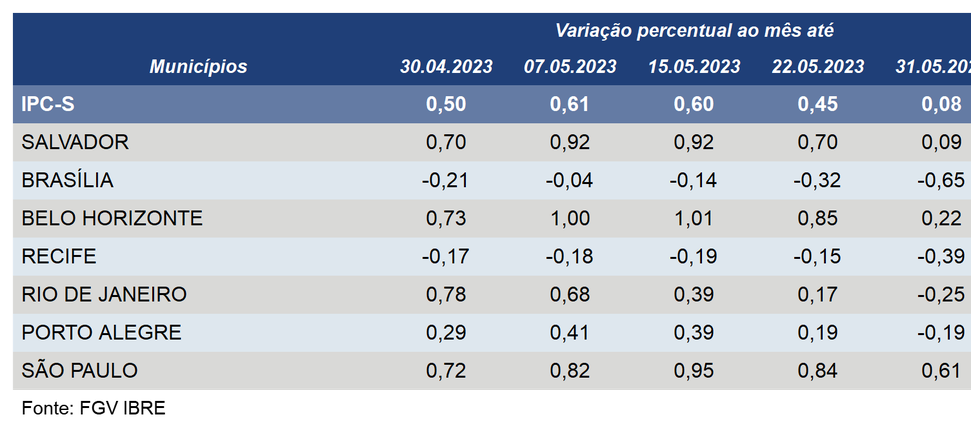 INFLAÇÃO: IPC-S, divulgado hoje, caiu em todas as capitais pesquisas no último período de maio
