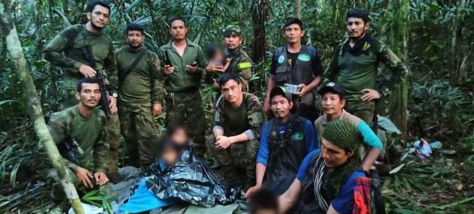 As forças militares colombianas encontraram as quatro crianças - de 9, 4, 13 e 1 anos, respectivamente - bem, mas com sinais de desidratação e picadas de insetos na sexta-feira (9/6). Elas foram levadas de helicóptero para receber atendimento médico em um hospital.