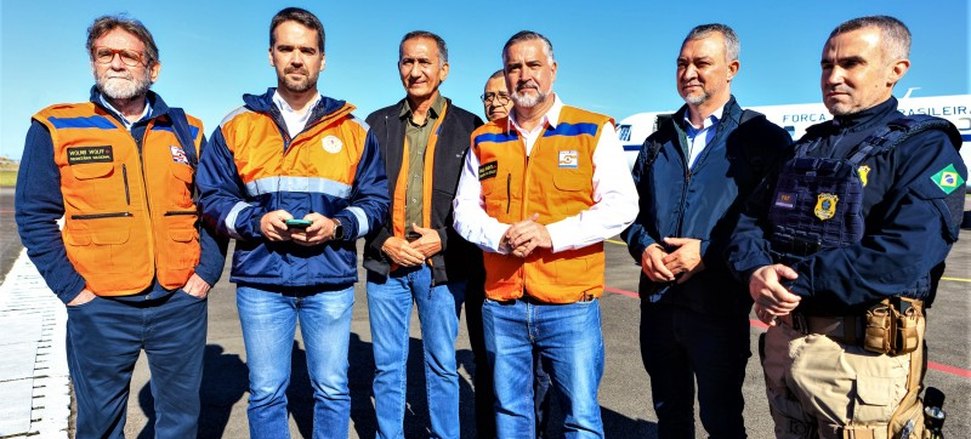 Leite estava acompanhado do ministro da Integração e do Desenvolvimento Regional, Waldez Góes, e do ministro-chefe da Secretaria de Comunicação Social da Presidência da República, Paulo Pimenta. Também se juntarão à comitiva o chefe da Casa Militar e coordenador estadual de Proteção e Defesa Civil, coronel Luciano Boeira, e secretários de Estado.