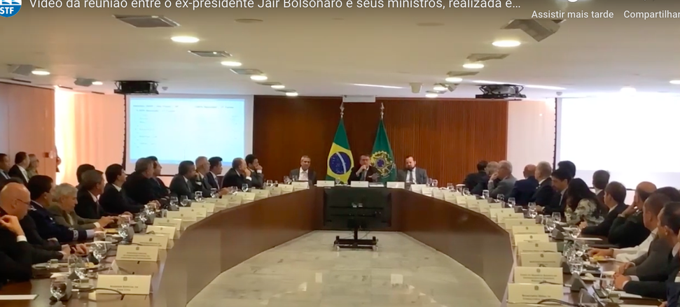 (Brasília-DF, 09/02/2024) Na manhã desta sexta-feira,09, o Supremo Tribunal Federal(STF), alegando que em face de “inúmeras publicações jornalísticas com a divulgação parcial e editada de trechos da reunião ocorrida em 05 de julho de 2022 entre o ex-presidente Jair Bolsonaro e seus ministros, que faz parte das investigações sobre a tentativa de golpe de Estado e de abolição violenta do Estado Democrático de Direito (PET 12.100), o ministro Alexandre de Moraes, do Supremo Tribunal Federal (STF), tornou pública a íntegra do vídeo.