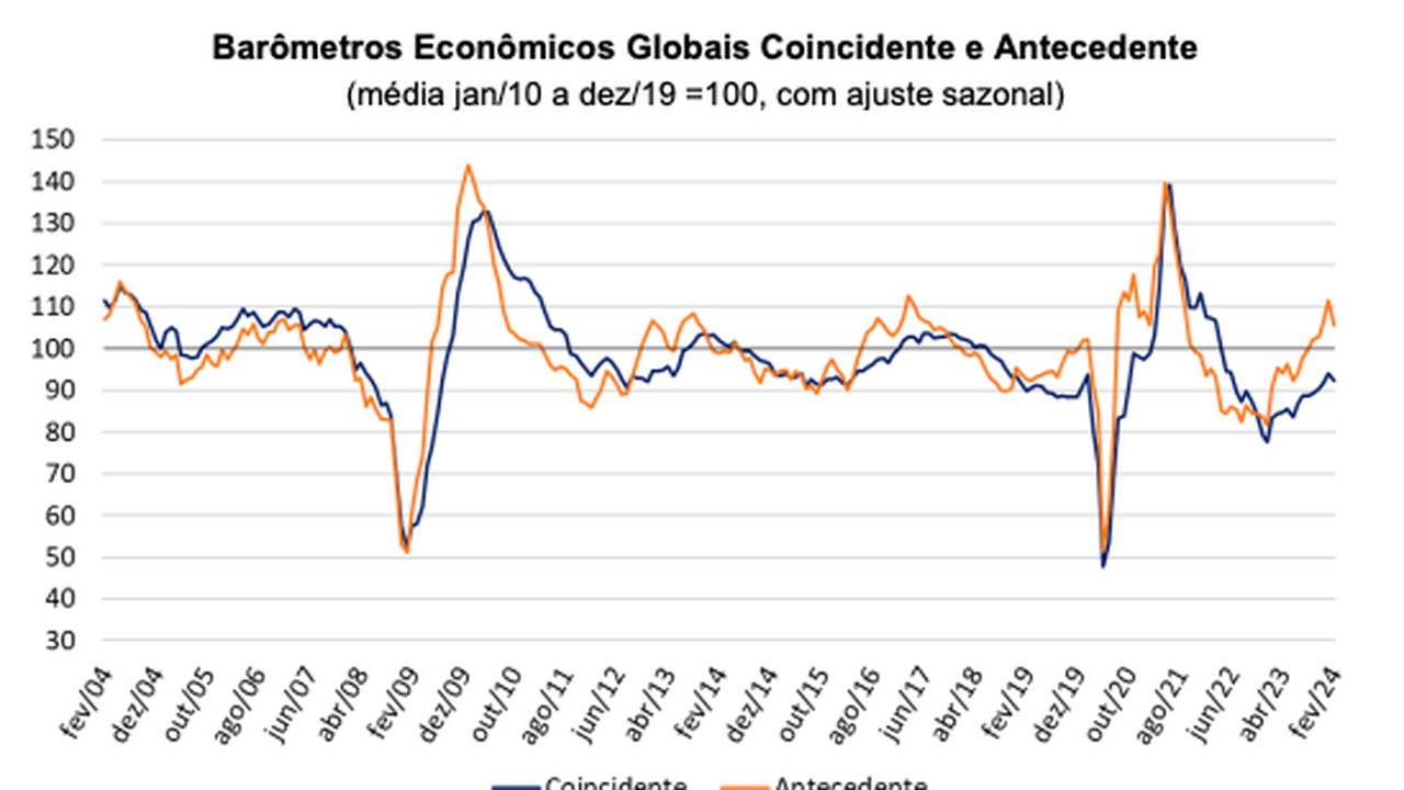 ECONOMIA: Barômetros Globais interrompem sequência de altas, porém mesmo com algum avanço em 2024 o crescimento ficará abaixo da média dos últimos 20 anos, informa FGV-IBRE