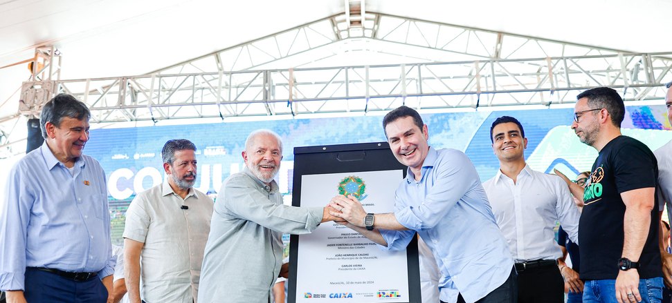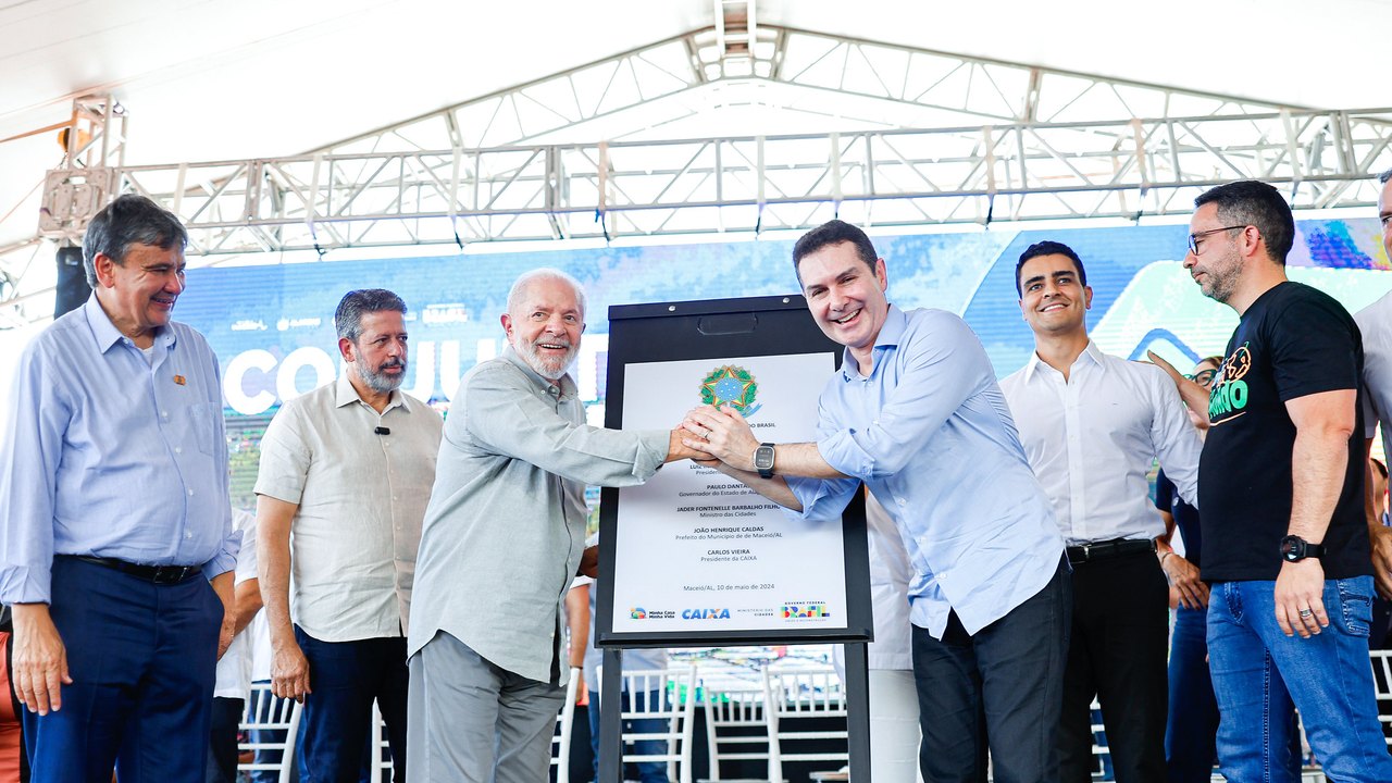 (Brasília-DF, 10/05/2024) O presidente Luiz Inácio Lula da Silva passou dois dias com agenda em Alagoas. Ont4em, 09, ele participou cerimônia de Assinatura da Ordem de Serviço do Trecho V do Canal do Sertão Alagoano, em São João da Tapera, com direito a presença dos arqui adversários políticos deputado Arthur Lira( Progressistas-AL) e o senador Renan Calheiros (MDB-AL). Hoje, ainda em Alagoas, mas agora em Maceió ele participou do evento de entrega de 914 unidades habitacionais do Conjunto Residencial Parque da Lagoa em mais uma etapa do programa Minha Casa, Minha Vida.