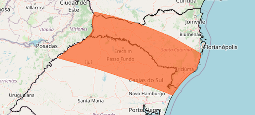 (Brasília-DF, 17/06/2024) Nesta segunda-feira, 17, o Instituto Nacional de Meteorologia (Inmet) emitiu cinco avisos de alertas de previsão de chuvas intensas e tempestades previstas para a Região Sul. São dois alertas amarelos, de perigo potencial, para chuvas que podem chegar a 30 milímetros por hora (mm/h), além de ventos intensos com velocidade de até 60 quilômetros por hora (km/h).