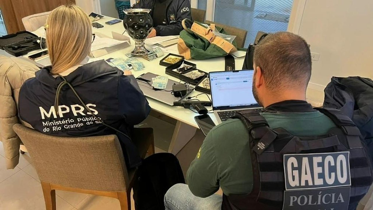 Agentes do 1º Núcleo Regional do GAECO — Capital — e do 2º Núcleo — Metropolitana — contam com o apoio do GAECO do Ministério Público de Santa Catarina na busca de mais provas relacionadas à lavagem de dinheiro decorrente da promoção de rifas ilegais com premiações em dinheiro e bens de alto valor que não teriam sido entregues às vítimas. No entanto, outra meta do MPRS é coibir a lavagem de capitais realizada pelos criminosos, que ainda teriam utilizado documento falso nas redes sociais. O promotor de Justiça Flávio Duarte, responsável pela investigação, destaca que dois veículos de luxo dos investigados foram sequestrados, além da apreensão de munição e uma arma de uso restrito das Forças Armadas, sem registro. Devido ao armamento encontrado, a influenciadora digital foi presa em flagrante.