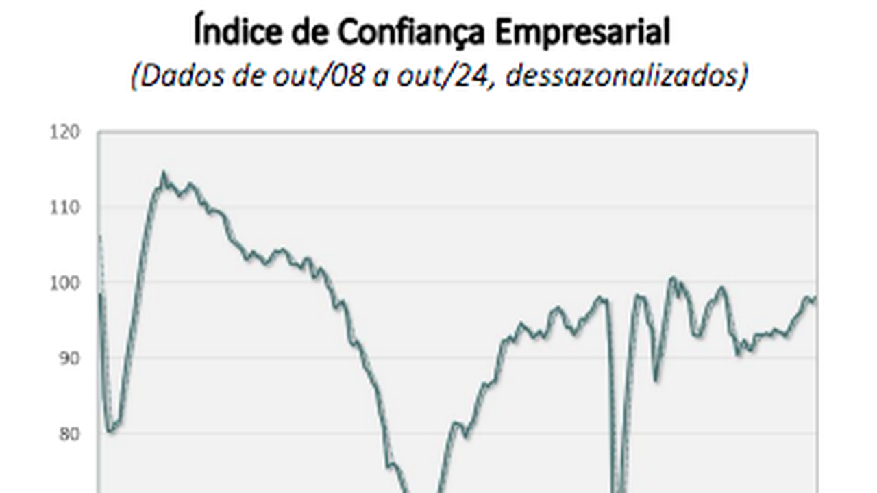 (Brasília-DF, 01/11/2024) Também na manhã desta sexta-feira, 1º de novembro, o FGV-IBRE divulgou o seu Índice de Confiança Empresarial (ICE) do FGV IBRE que avançou 0,7 ponto em outubro, para 98,1 pontos, revertendo a queda do mês anterior. Em médias móveis trimestrais, o índice avançou 0,1 ponto.