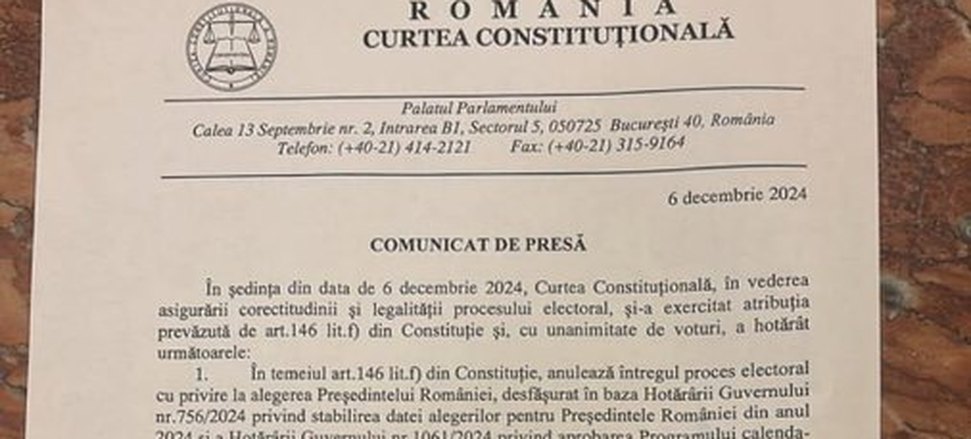 (Brasília-DF, 06/12/2024). Nesta sexta-feira, 6, o Supremo Tribunal da Roménia anulou o primeiro turno das eleições presidenciais. Todo o processo eleitoral foi cancelado e será anunciada nova data para eleições.