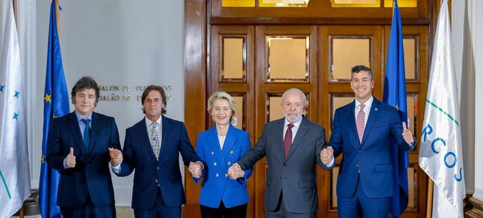 O anúncio foi feito durante o encontro de Cúpula de Chefes de Estado do Mercosul, em Montevidéu. Estavam presentes os presidentes Luiz Inácio Lula da Silva, da Argentina, Javier Milei, do Uruguai, Luis Lacalle Pou, e do Paraguai, Santiago Peña – os quatro países que integram o Mercosul –, além da chefe da Comissão Europeia, a alemã Ursula von der Leyen.