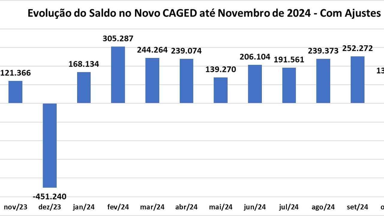 (Brasília-DF, 27/12/2024) Nesta sexta-feira, 27, o Ministério do Trabalho e Emprego divulgou o relatório do Novo Caged (Cadastro Geral de Empregados e Desempregados) de novembro apontando que registrou saldo de +106.625 postos de trabalho