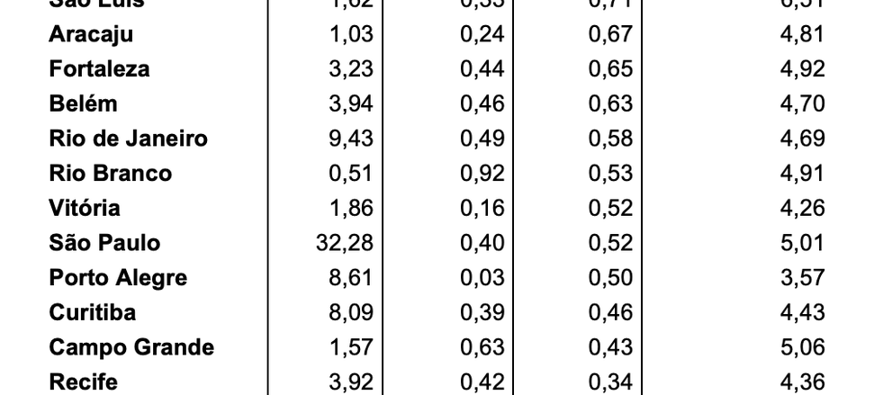 Ainda em Transportes, a variação do ônibus urbano (-0,65%) foi influenciada pela gratuidade nas tarifas no dia 25 de dezembro em São Paulo (-3,45%). O trem (3,77%) e o metrô (3,90%) tiveram altas por conta da incorporação de gratuidades concedidas nos dias do ENEM em novembro, em São Paulo (7,07% em ambos os subitens).