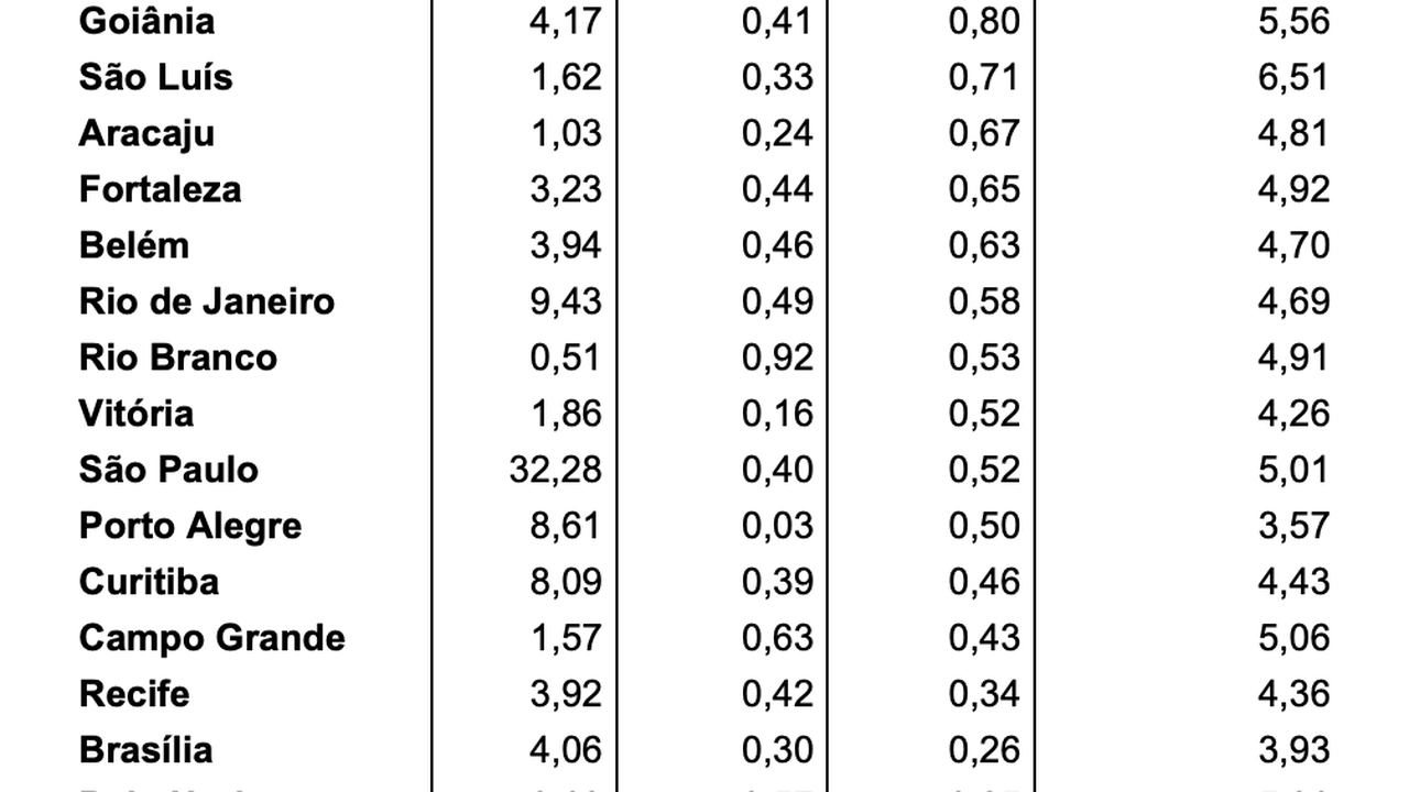 A maior variação regional foi em Salvador (0,89%), influenciada pela alta das carnes (7,31%) e da gasolina (4,04%). A menor variação ocorreu em Belo Horizonte (0,25%), por conta do recuo da energia elétrica residencial (-2,41%).