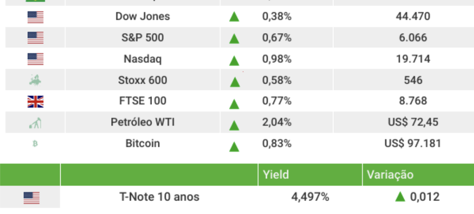 Entre as bolsas globais, o sentimento também foi positivo apesar das ameaças tarifárias.