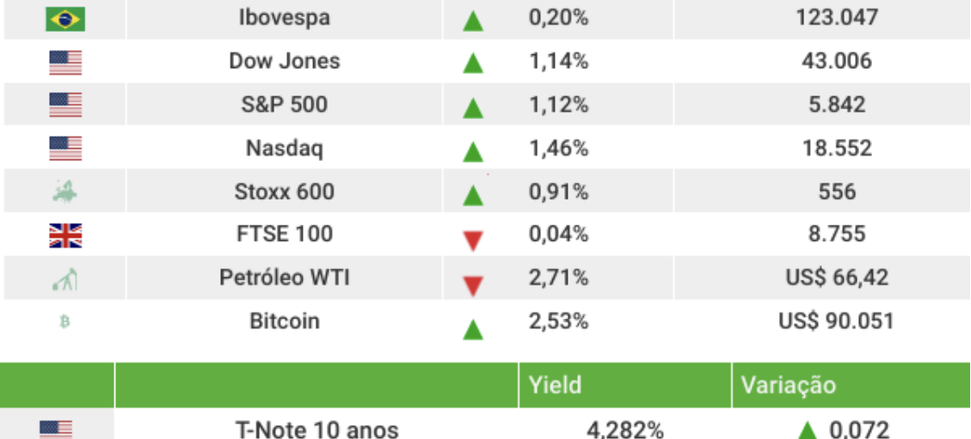 (Brasília-DF, 06/03/2025). Nesta Quarta-Feira de Cinzas, o primeiro dia útil em que os mercados ficaram fechados no Brasil nesta semana do Carnaval, o Ibovespa fechou em alta de 0,20% no pregão reduzido. O principal índice da B3 encerrou aos 123.047 pontos.