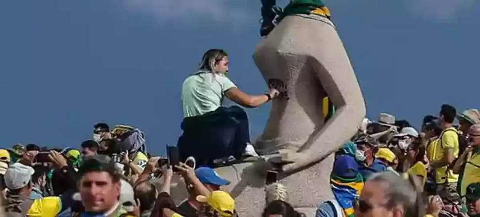 Ao se manifestar pela condenação de Débora, Alexandre de Moraes afirmou que ela "confessadamente adentrou à Praça dos Três Poderes e vandalizou a escultura A Justiça, de Alfredo Ceschiatti, mesmo com todo cenário de depredação que se encontrava o espaço público".