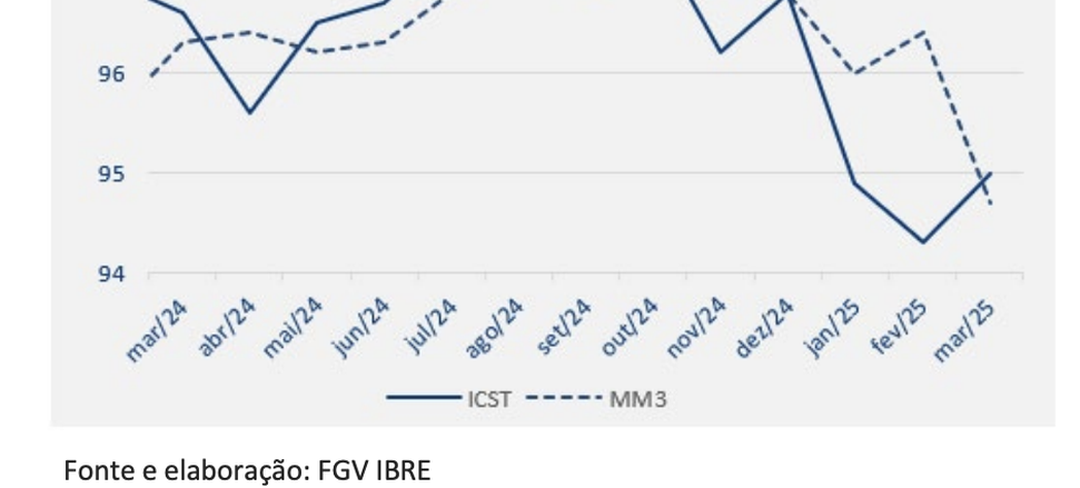 (Brasília-DF, 27/03/2025). Na manhã desta quarta-feira, 26, o FGV-IBRE divulgou o seu Índice de Confiança da Construção (ICST) que subiu 0,7 ponto em março, para 95,0 pontos, após dois meses seguidos de retração. Na média móvel trimestral, o índice recuou 1,7 ponto.