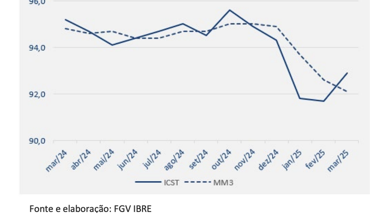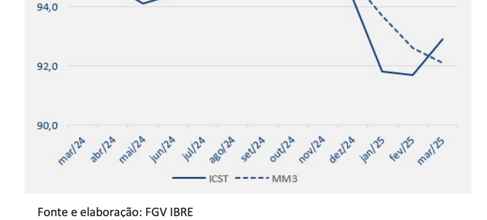(Brasília-DF, 28/03/2025) Na manhã desta sexta-feira, 28, a FGV-IBRE divulgou o seu Índice de Confiança de Serviços (ICS) que avançou 1,2 ponto em março, para 92,9 pontos. Na média móvel trimestral, o índice recuou 0,5 ponto.